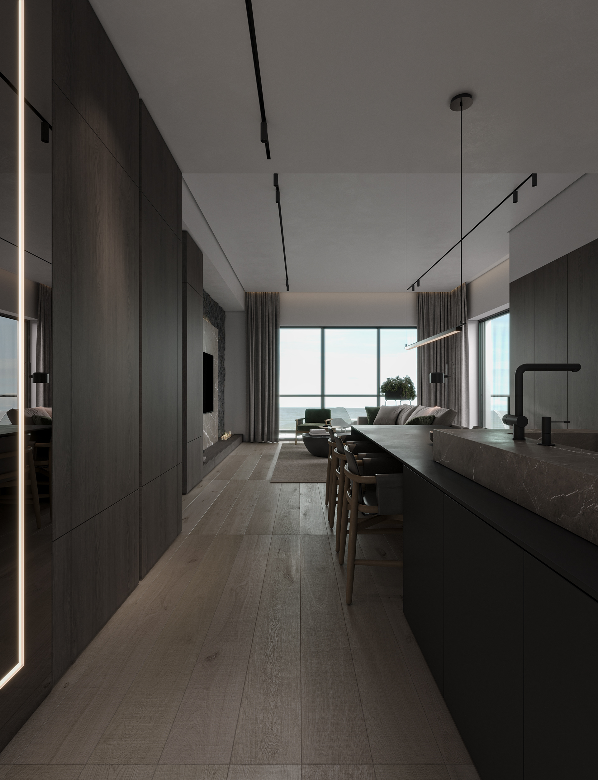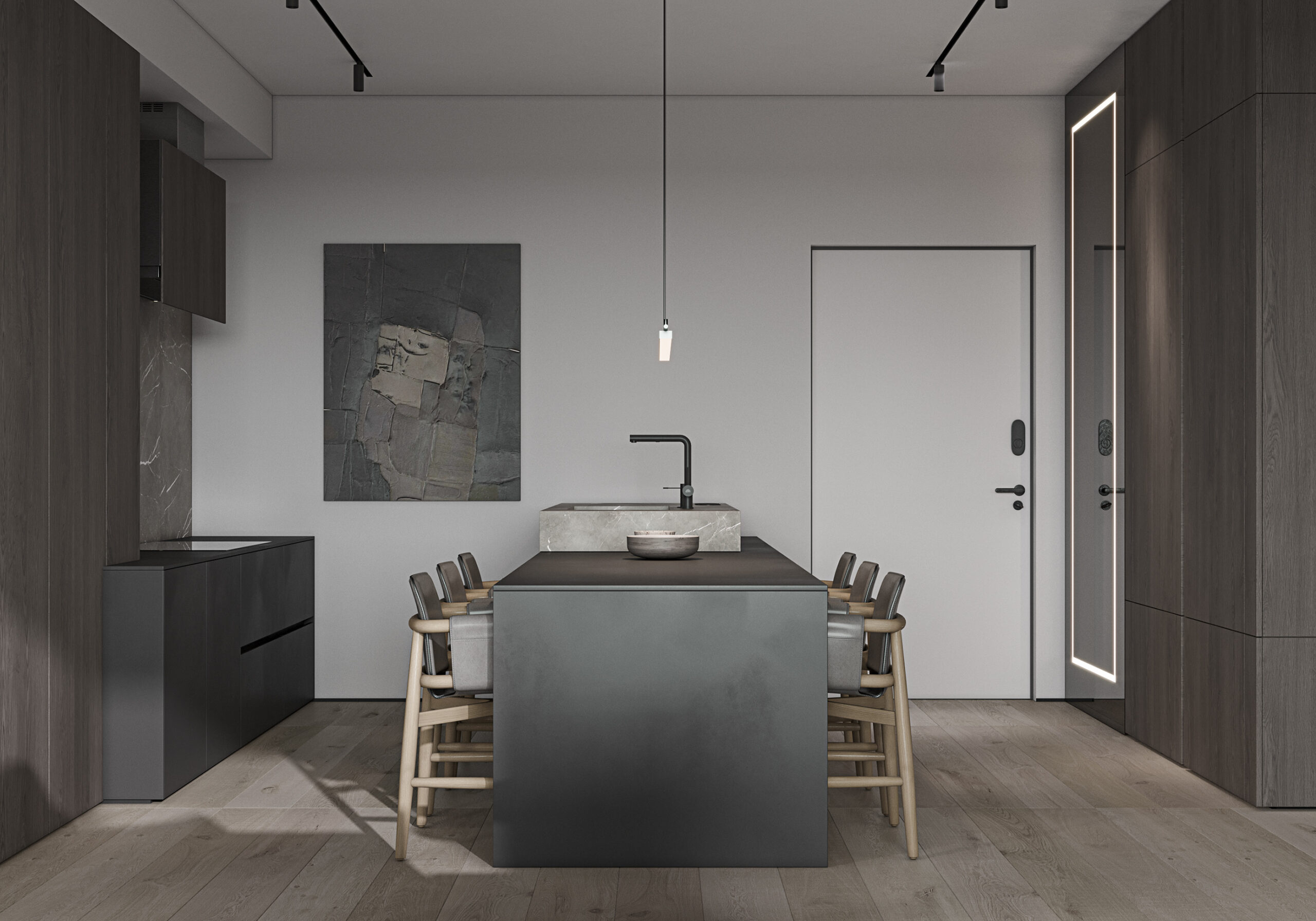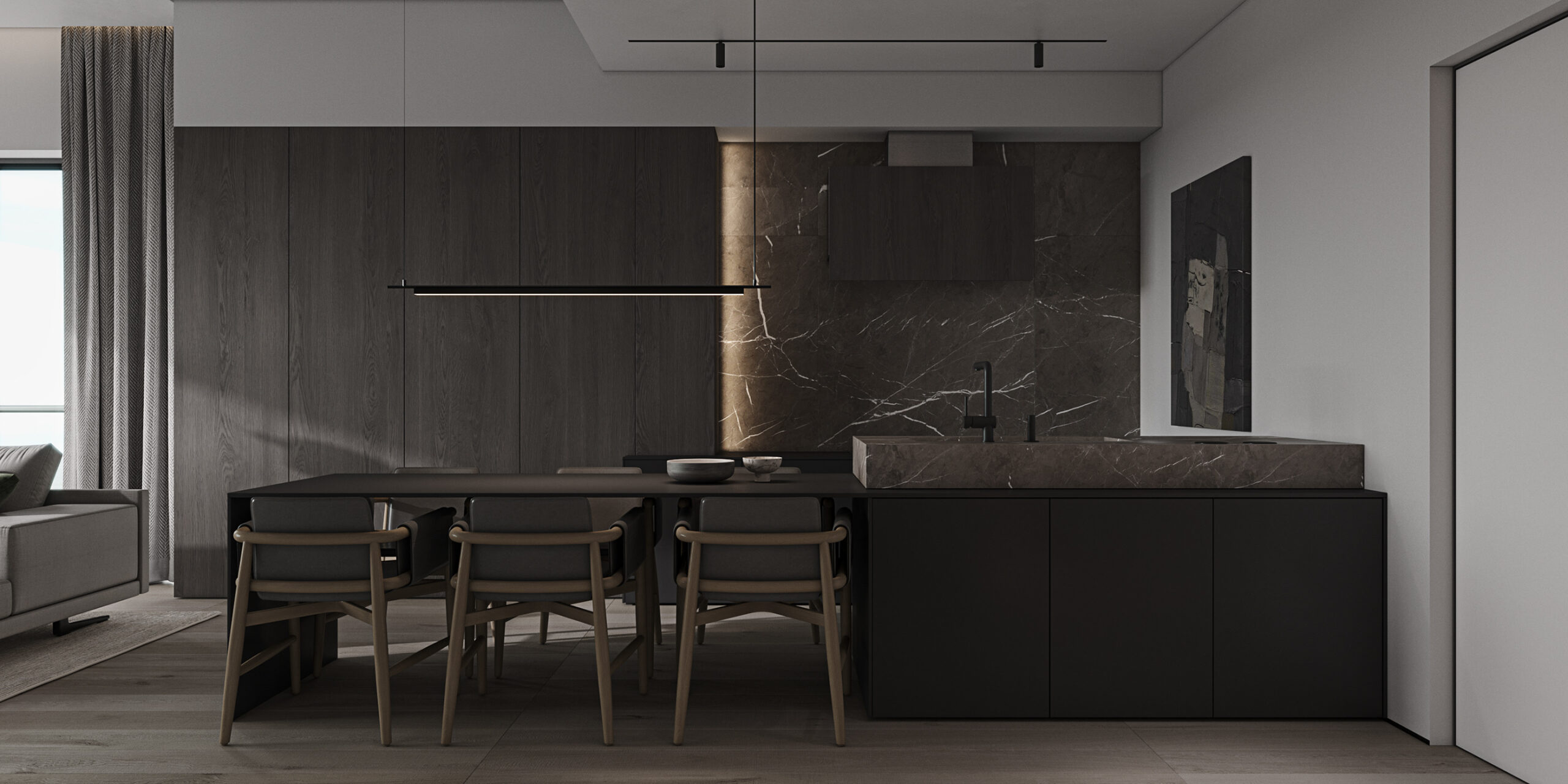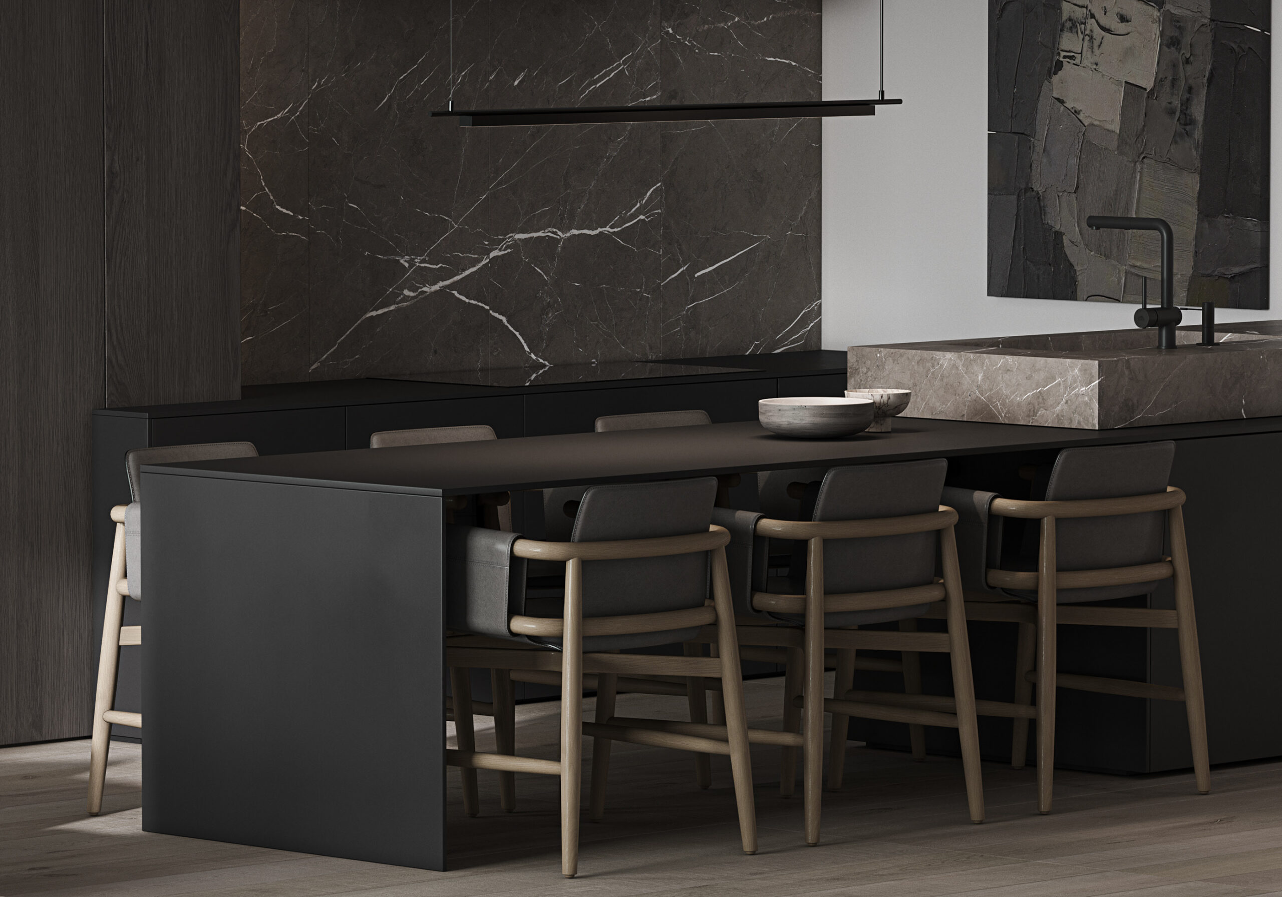 This modern black wood dining table and washstand combination showcases a simple yet elegant design concept, suitable for various modern home styles. Whether for family gatherings or daily use, it can add a touch of fashion and practicality to your space.