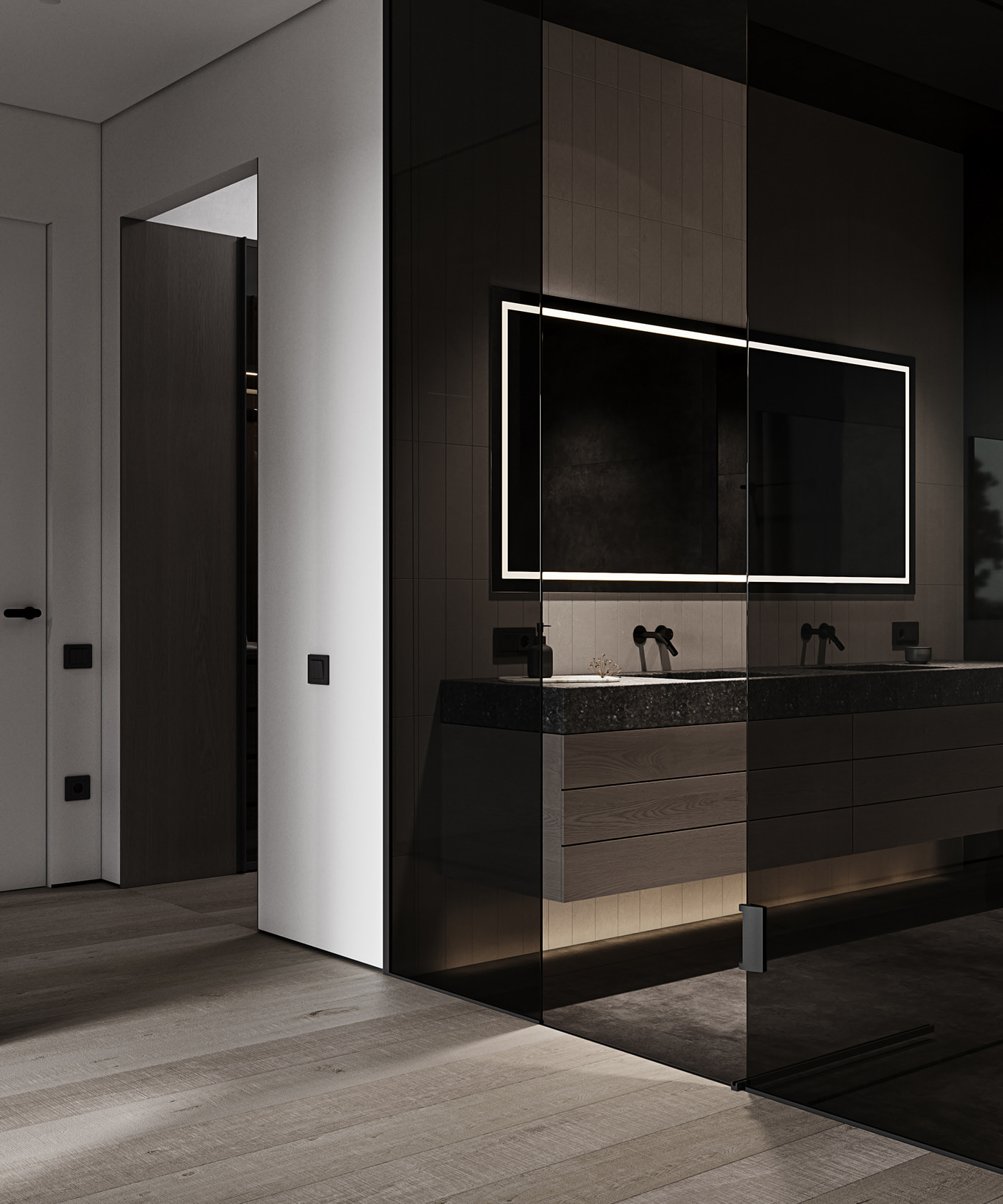 This modern dark wood dressing table and washstand combination is specially designed for those who value elegance and practicality. Its simple and stylish appearance perfectly combines functionality and aesthetics, making it the highlight of your bathroom.