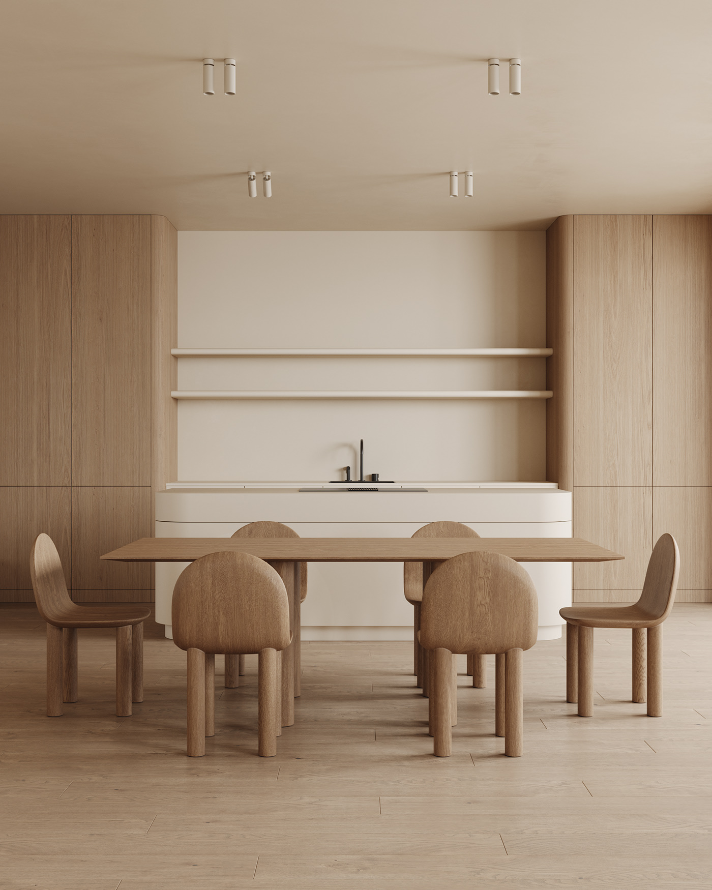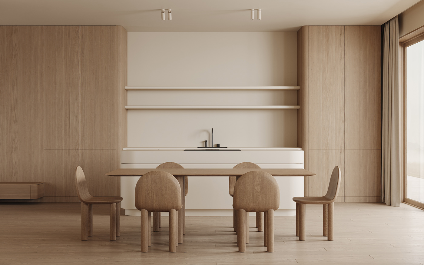 This modern wooden-style dining table features a natural wood color as its main tone, presenting a simple and comfortable design concept. Its unique wood grain and warm color add a touch of natural atmosphere to your dining room, making it an ideal choice for family gatherings.